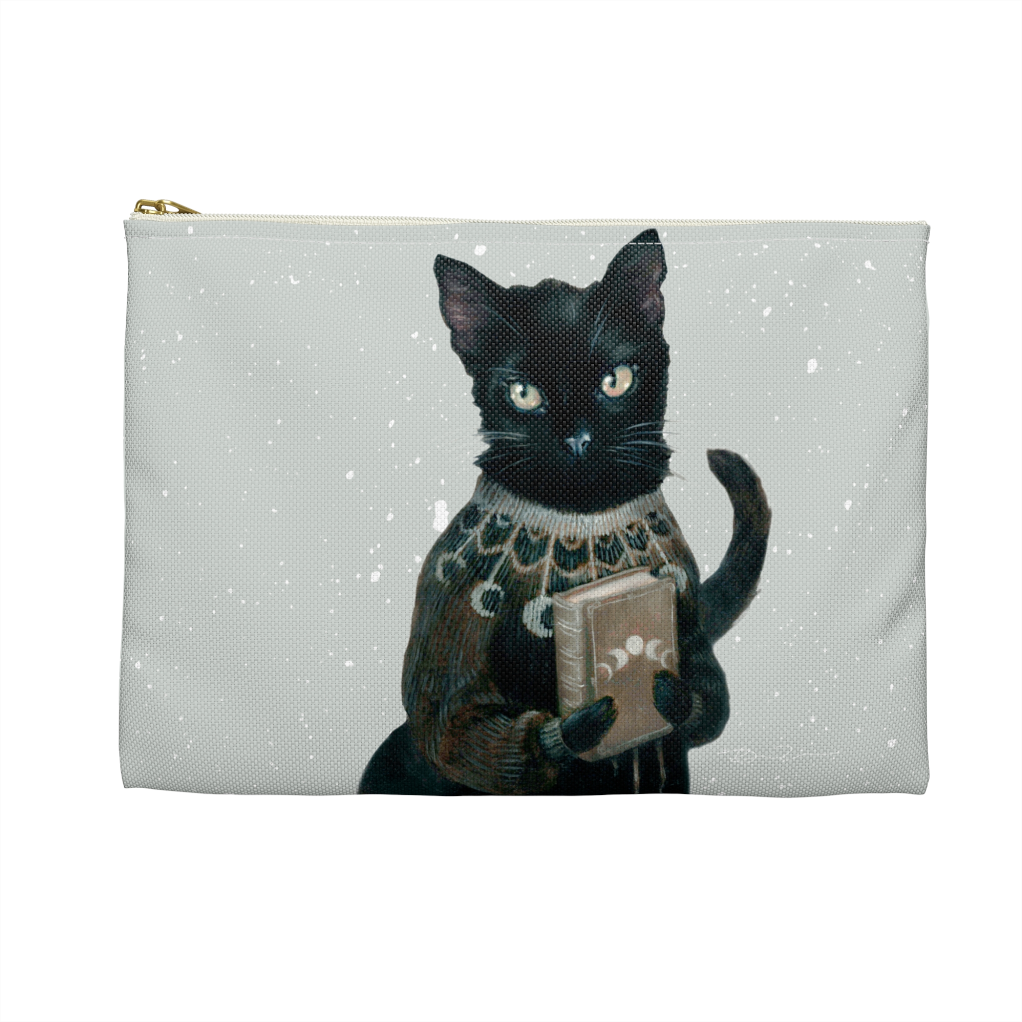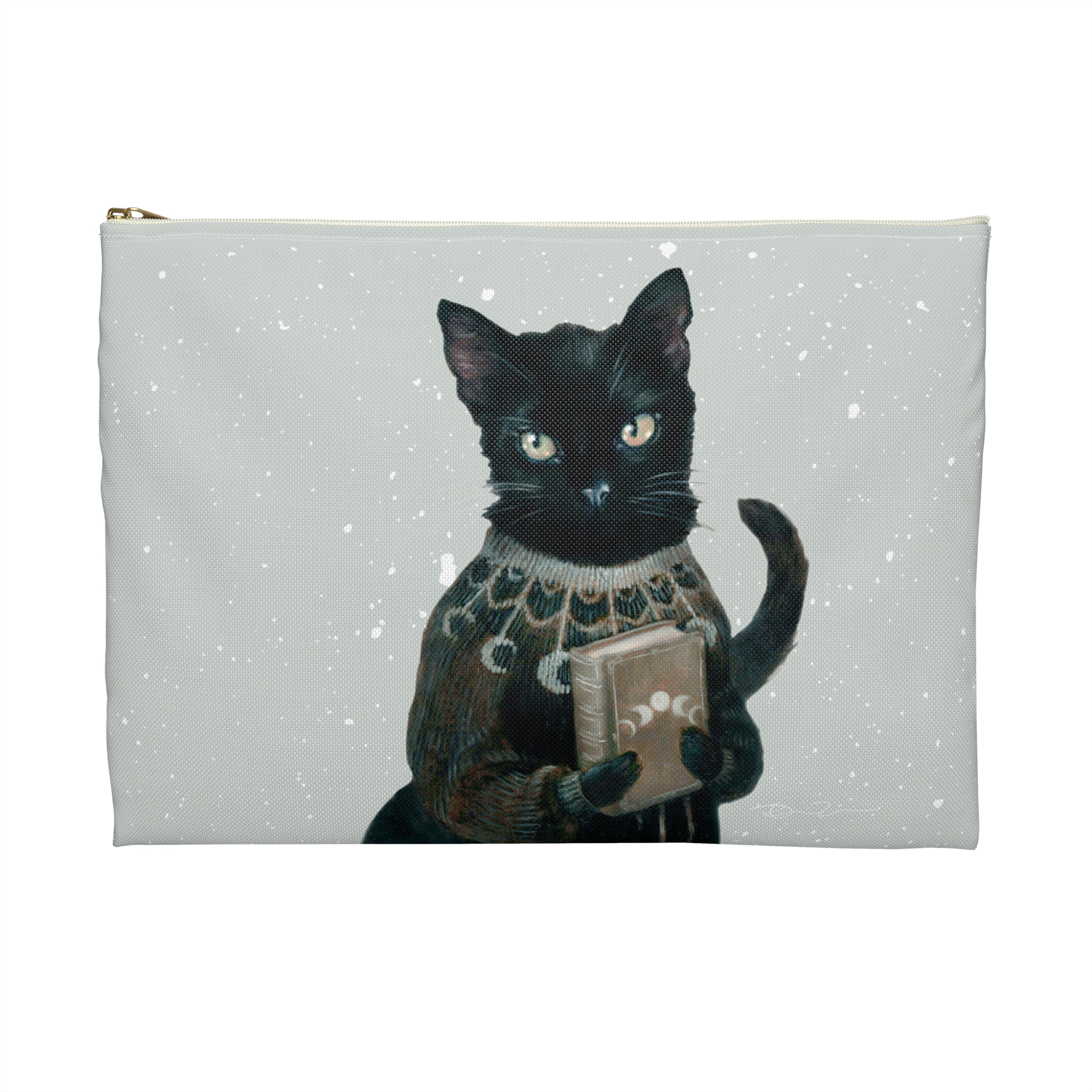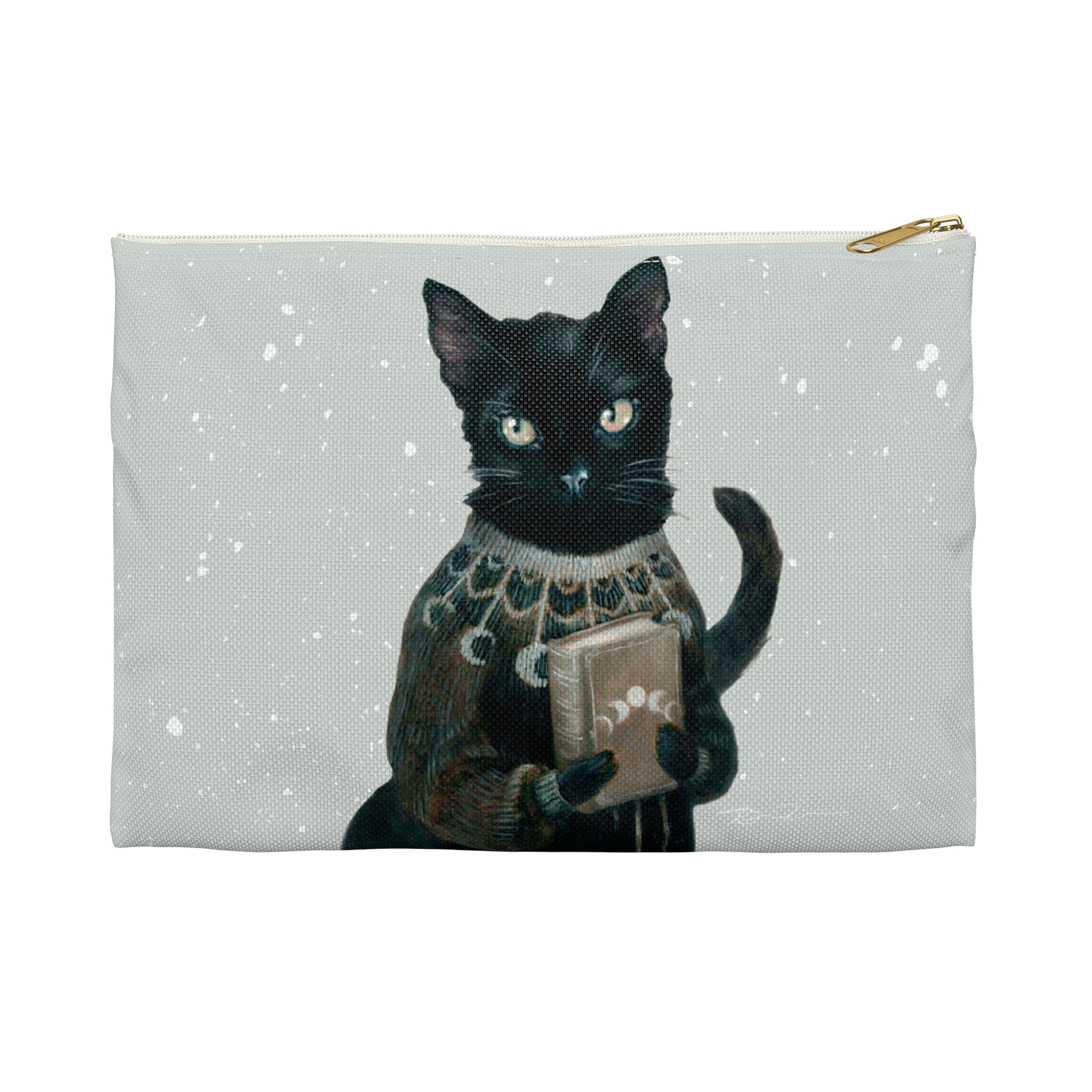 Cat with book pencil case pouch, animal in fair isle sweater portrait accessory or cosmetic bag, art by Erika Taguchi-Newton – “Eliza”