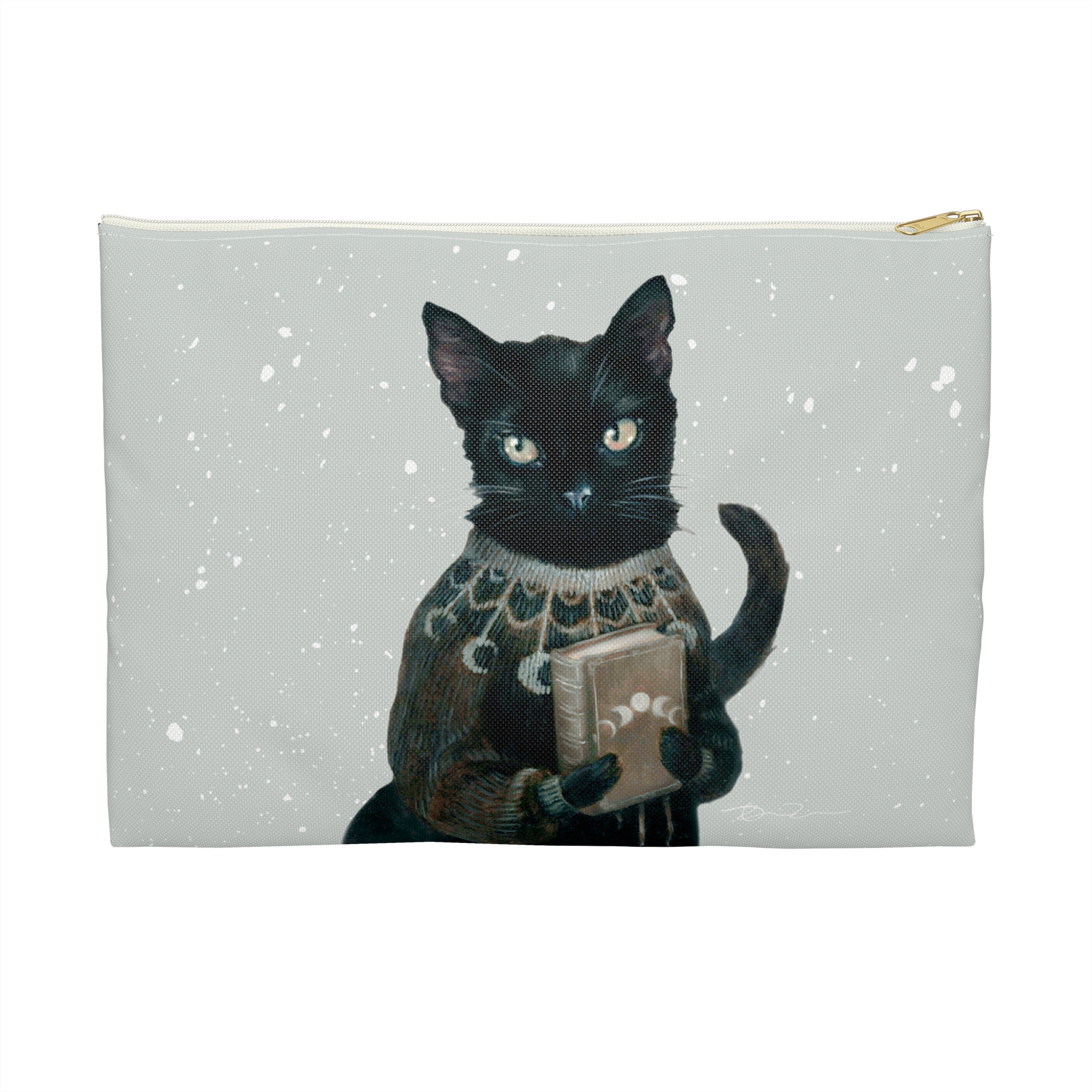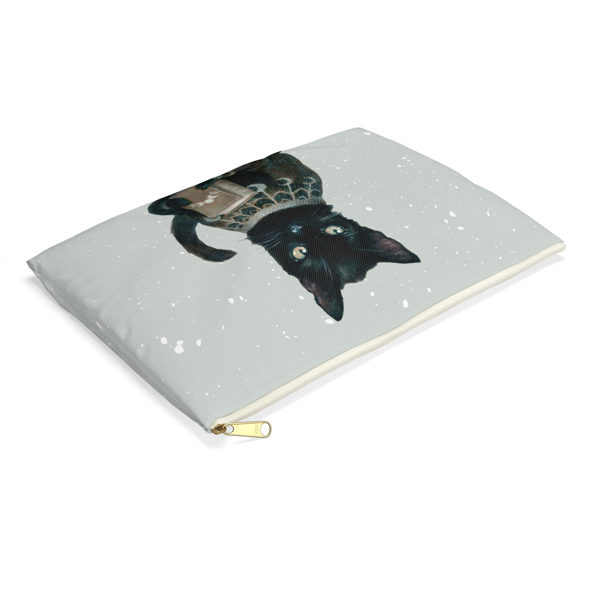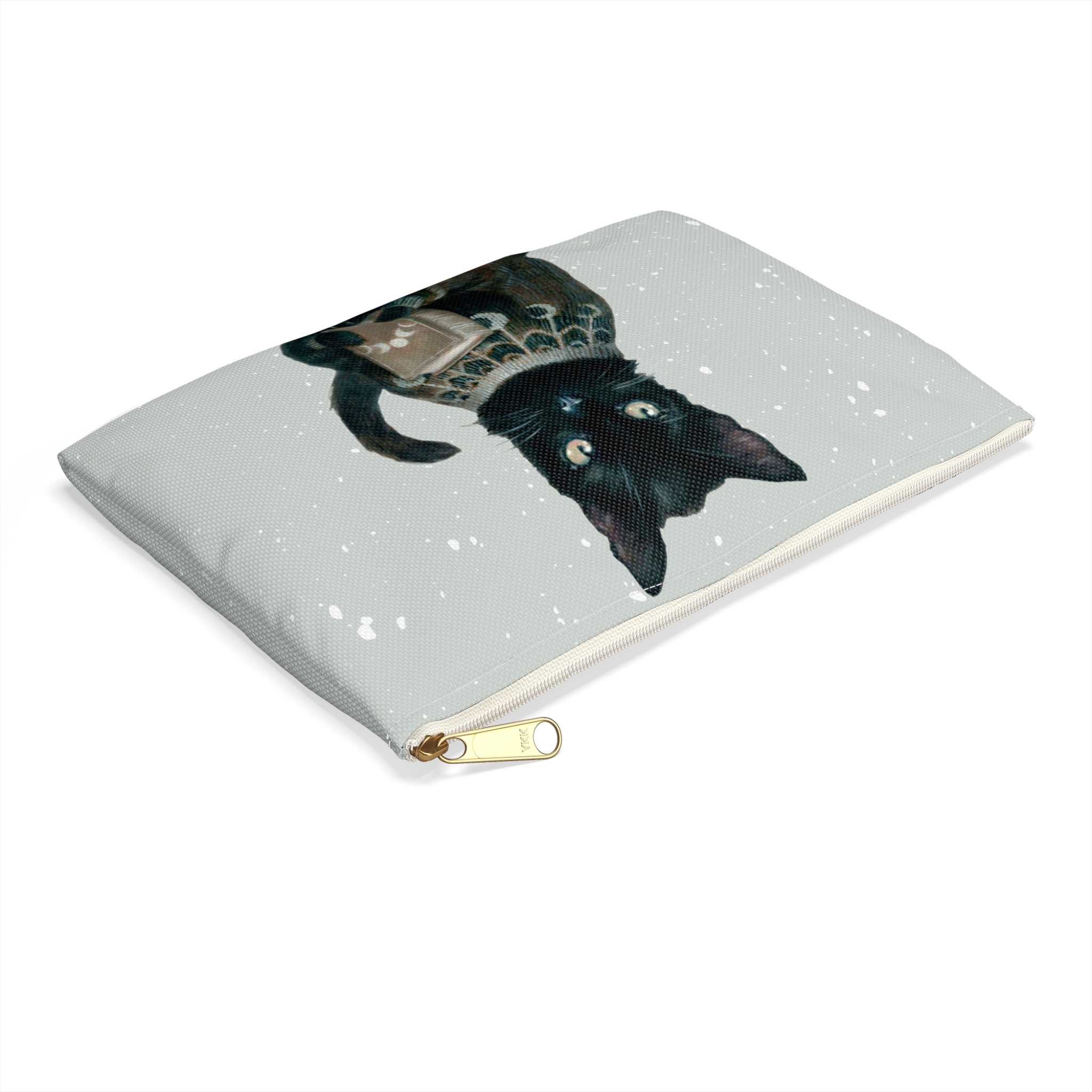 Cat with book pencil case pouch, animal in fair isle sweater portrait accessory or cosmetic bag, art by Erika Taguchi-Newton – “Eliza”